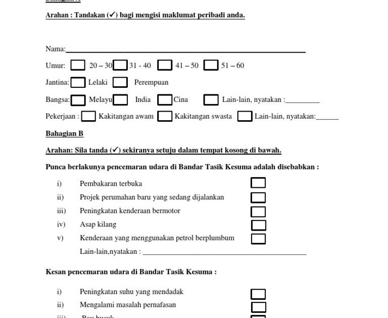 Borang Soal Selidik / Temu Bual Kerja Lapangan / Tugasan via www.bumigemilang.com